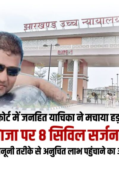 हाई कोर्ट में जनहित याचिका ने मचाया हड़कंप निविदा घोटाले की CBI जांच और सभी ठेकों को रद्द करने की मांग** रांची: झारखंड उच्च न्यायालय में दायर एक सनसनीखेज जनहित याचिका ने राज्य के स्वास्थ्य, चिकित्सा शिक्षा और परिवार कल्याण विभाग में भ्रष्टाचार और अनियमितताओं के काले खेल को उजागर किया है। यह याचिका बिजय […]
